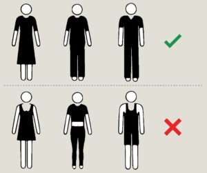 Shoulders and backs need to be covered in the church. No mini-skirts or shorts allowed.